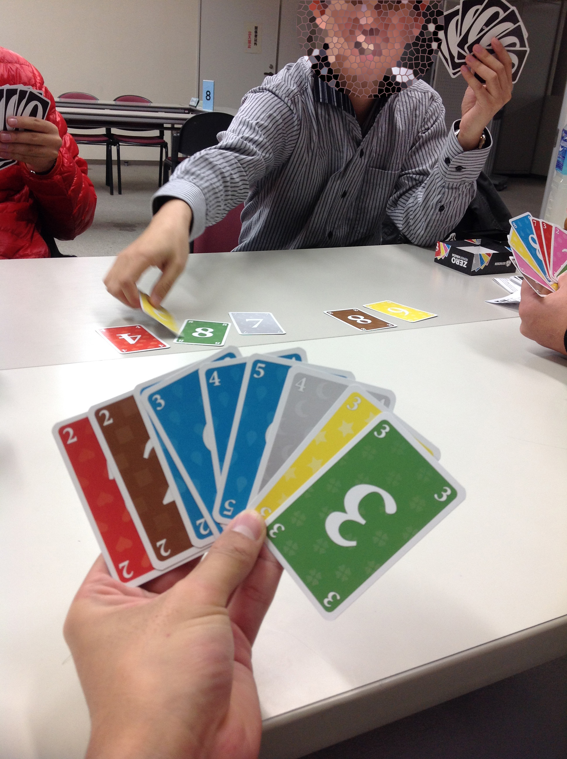 カードは7色、各1~8の数字カードとなっており、各プレイヤーは9枚持ちます。